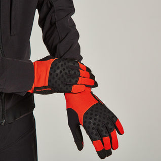 Our engineers and designers closely studied the hand\'s contact points when mountain biking. They have chosen: - a material on the back of the hand that withstands vegetation. - a material on the palm that grips the handlebars well. - silicone bands to grip the brakes (on 3 fingers, because that\'s all you need to brake). Certain contact points, like the palm, are also padded while others are breathable.