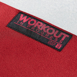 A photo of the Non-Slip Weight Training Towel - Burgundy in use
