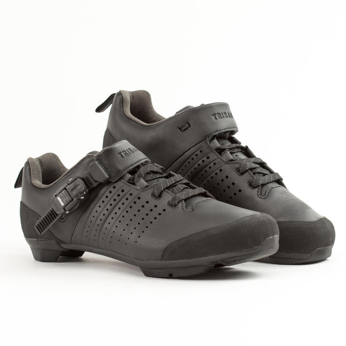 Road and Gravel Cycling Leather Lace-Up SPD Shoes GRVL 520 - Black