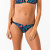 Along with the sliding triangle, tie-side bikini bottoms are an essential element of a bikini! They are a summer wardrobe must-have. Thanks to the high-cut leg at the tops of the thighs, they make your legs look longer. Contrary to popular belief, all women can wear them, provided you are comfortable with your body and particularly your stomach, as they are rather low rise bikini bottoms. The wide side-ties can be tightened and ensure the bikini bottoms stay in place in the waves.