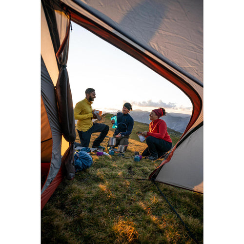 Our passionate trekking team designed this cooking set to allow trekkers to cook and eat with a complete, clever and lightweight kit.