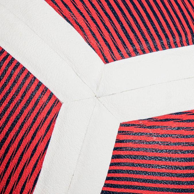 This applies to the weight (between 260 g and 280 g), number of panels, type of components and durability. Tested in our laboratories, this ball withstands 10,000 throws on a steel board at a speed of 50 km/h. Following the test, the ball retained both its shape and a good pressure level.