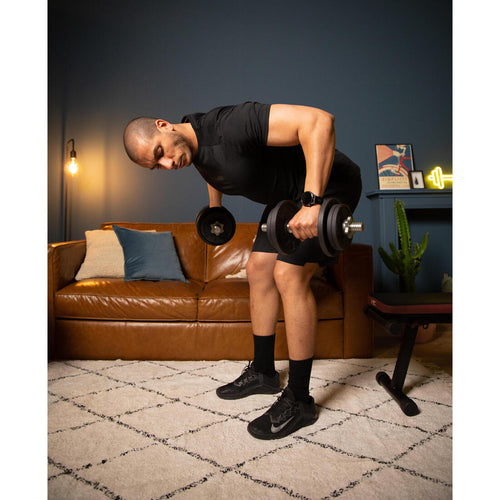 Mix up your training and do even more exercises by using other accessories with your 20 kg dumbbell set. For example, you can do bench press with a bench.